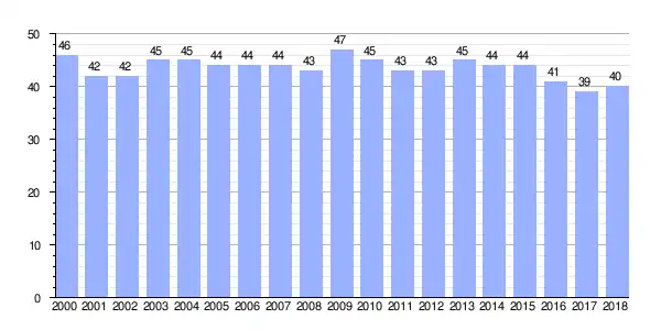 Gráfica de evolución demográfica de Carretera entre 2000 y 2018 |