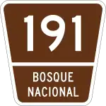 El bosque nacional El Yunque utiliza el marcador de carretera forestal en sus principales rutas de acceso. El identificador consiste en un trapecio invertido de color marrón con la frase bosque nacional debajo del número de la ruta. Este es un marcador utilizado a lo largo de las carreteras forestales en los Estados Unidos.[1]
