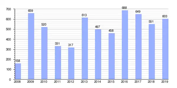 Deuda viva del Ayuntamiento de Carrión de los Céspedes en miles de Euros según datos del Ministerio de Hacienda y Ad. Públicas.[4] |