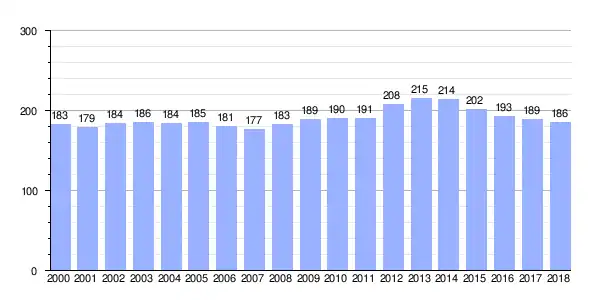Gráfica de evolución demográfica de Carrio entre 2000 y 2018 |