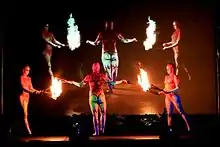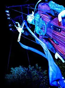 Sus espectáculos combinan diferentes disciplinas artísticas, como acrobacias con aro, malabares con fuego, danza o actuación teatral con esculturas móviles gigantes para generar una atmósfera única e increíble. Las Esculturas Móviles Gigantes son creaciones originales de grandes dimensiones que parecen cobrar vida, están articuladas y dotadas de movilidad llegando a alcanzar los 12 metros de altura. Su carácter realista las hace sorprendentes y representan a animales o personajes fantásticos. Las escenografías sobre las que se articulan sus creaciones son de diseño y producción propia y se ponen al servicio de la obra para que la experiencia visual sea completa. La caracterización de los personajes, el vestuario y el maquillaje corporal, que incluyen trabajados con látex, se conjugan para sumarse a las diferentes disciplinas artísticas que se integran en sus exhibiciones conformando un producto de gran fuerza expresiva y único.