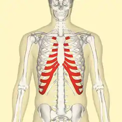 ![]() Posición de los cartílagos costales (en rojo). | ||