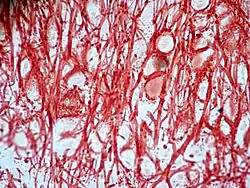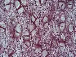 ![]() Imagen tomada con microscopio óptico de cartílago elástico. | ||