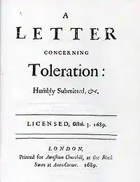 Carta sobre la tolerancia son una serie de cartas que el filósofo John Locke publicó entre los años 1689 y 1690, que ofrecen en buena medida las bases ideológicas esenciales para su teoría política expuesta por las mismas fechas en Dos tratados sobre el gobierno civil. La obra apareció en medio del temor de que el catolicismo se apoderara de Inglaterra, y responde al problema de la religión proponiendo la tolerancia religiosa como respuesta. Esta carta estaba dirigida a amigo cercano de Locke, Philipp van Limborch, quien la publicó sin el conocimiento de Locke. Su publicación inicial fue en latín, aunque se tradujo de inmediato a otros idiomas.[1]