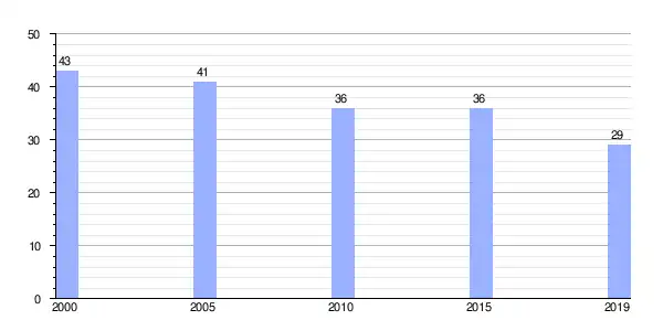 Gráfica de evolución demográfica de Cartea entre 2000 y 2019 |