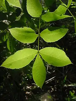 A pesar de que puede crecer hasta la altura de 25 metros, muchos ejemplares son vistos como arbustos de 3-5 m de altura, con muchos pequeños troncos. Las hojas son de 20-30 cm de largo, pinnadas, con de tres a siete foliolos, cada uno de 4-10 cm de largo y 2-4 cm de ancho, con un margen dentado grueso. El fruto es una nuez de 3-4 cm de largo y 2-2.5 cm de diámetro, con una cáscara gruesa y dura y una semilla comestible dulce.