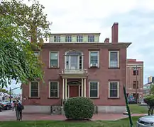 La casa es una estructura de ladrillo, de dos pisos de altura y cinco tramos de ancho, con techo a cuatro aguas rematado por un pequeño monitor. Tiene cuatro chimeneas que se elevan desde sus paredes laterales exteriores. Su entrada central está flanqueada por ventanas laterales, rematada por una ventana de luneta y protegida por un pórtico sostenido por columnas jónicas emparejadas. La ventana sobre la entrada es una alteración de 1968 recuperada de una casa de época similar en Pawtucket. El interior ha conservado gran parte de su carpintería original, a pesar de los numerosos usos que ha tenido la casa.[1]
