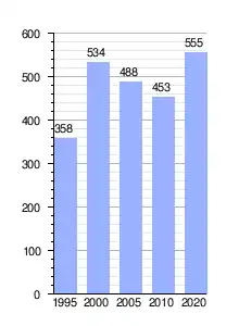 Población de los censos y conteos del Instituto Nacional de Estadística y Geografía (INEGI) de 1930 a 2010.[6] |