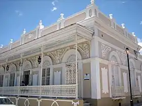 La estructura en forma de U es de un piso con un patio interior, que el arquitecto local Manuel Texidor construyó en 1887 después de graduarse a la Academia de Bellas artes de París..