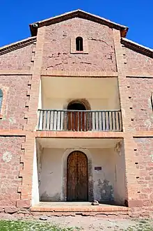«Su volumetría es proporcionada, con el porche de acceso en la planta baja y balcón o mirador en la alta, protegido por baranda de tablas con pasamano de madera. En la línea del hastial hay una estrecha abertura vertical con el borde superior arqueado. En los cuadrángulos laterales, delimitados por bandas de ladrillo en las zonas estructurales, se abren cuatro vanos enmarcados en ladrillo con alféizar recto, marco superior redondeado y contraventanas, a juego con los portalones de entrada y de la galería. La fachada del edificio principal se abre a una plazoleta elevada, soportada por un muro semicircular de mampostería a modo de barbacana sobre el Prado, sencilla solución arquitectónica para salvar el desnivel».[4]Pinturas rupestres en el Rodeno: abrigos del Prado de Tormón, Alfredo Sánchez Garzón