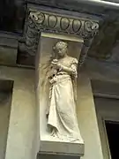 En la fachada, Sagnier mezcló elementos clásicos y rococó —como la baranda de la azotea o las cornisas— junto con otros de inspiración modernista. El piso principal cuenta con un balcón, sobre la puerta de acceso a la finca, sostenido por cuatro grandes ménsulas, esculpidas por Eusebio Arnau, que representan las cuatro edades de la vida.