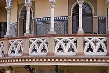 Para su construcción, Jaime Pedreny utilizó cemento sueco, azulejos texturados sevillanos, celosías y rejas de fierro forjado, vidrios europeos y maderas chilenas.[1] Se convirtió en la primera edificación del norte de Chile en poseer ascensor.[4]