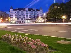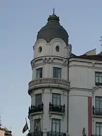 ![]() Fachadas de la casa Mantilla hacia las calles Miguel Íscar (izquierda) y Acera de Recoletos (derecha). | ||