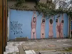 En su entrada, tiene escrito un madero los nombres de algunas de las víctimas confirmadas que fueron asesinadas en esta casa.