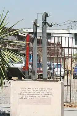 El colectivo José Domingo Cañas instaló un monolito frente al sitio que recuerda los 62 nombres de los detenidos desaparecidos y la ejecutada Lumi Videla, quién murió en la tortura y lanzada en horas de toque de queda a la Embajada de Italia.
