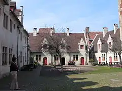 Durante el siglo XVI la casa adquirió su forma actual: una puerta de entrada, ocho casitas dando a la calle y dieciséis viviendas de tres habitaciones rodeando el patio interior. La capilla de Santa Catharina estilo gótico tardío fue construida entre 1543 y 1546.