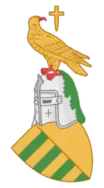 Escudo partido: 1º de azur, creciente de plata al jefe y estrella de oro en punta; 2º de oro, tres fajas de gules.
