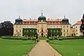 En 1744, varios territorios de Fürstenberg fueron reunificados en el Principado de Fürstenberg-Fürstenberg, ya que todas las líneas excepto una se habían extinguido. Entre 1664 y 1716 la residencia había permanecido en Heiligenberg. Las residencias de dos principados parciales entre 1716 y 1723 fueron Stühlingen y Meßkirch. En 1723 el Príncipe José de Fürstenberg-Stühlingen construyó su nueva residencia en Donaueschingen, hallándose más centralmente localizado, que permaneció como la residencia del principado unificado después de la extinción de la rama familiar de Meßkirch.