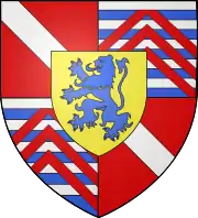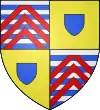 Cuarteles: de 1 et 4, burelé de plata y de azul en tres chevrons de gueules brochant, el primer écimé (La Rochefoucauld) ; al 2 y 3, de oro con un escudo azul.[13] |