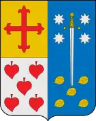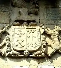 El escudo original, también constaba de dos llaves cruzadas, simbolizando el poder y la fe que tenía la familia, y que al mismo tiempo eran constructores y protectores de alguna iglesia del lugar. Encima de las llaves, tenía tres flores de lis (aún se mantienen en el escudo, pero en vez de tres son cinco), que simboliza el antiguo origen aquitano de la familia (de la que descendían también los reyes de Francia, España e Inglaterra).