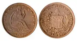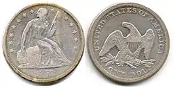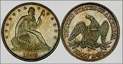Cuartos de dólar | Libertad sentada | 1840–1844, 1847, 1849–1860, 1891 | ![]() | |