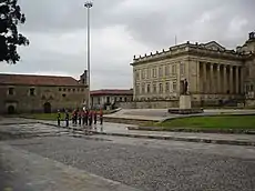 Hacia el costado norte frente al pórtico neoclásico se encuentra la Plaza de Armas, la estatua de Antonio Nariño y el Patio de Rafael Núñez, los cuales conducen directamente al Capitolio Nacional de Colombia, construido entre 1847 y 1926 y sede del Congreso de la República.