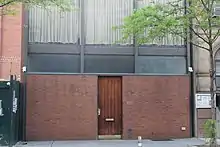 Gran parte del primer piso a lo largo de la calle 52 está revestido con ladrillo rojo en flamenco de aparejos y mortero. Este material se utilizó para complementar el edificio de la escuela inmediatamente al este,[3] que fue demolido después de 2019[17] La pared de ladrillos de la casa de huéspedes mide unos 3 m altura y se extiende hasta la línea del lote.[18] La pared de ladrillos está flanqueada por una tira de metal a cada lado, que separa la fachada principal de las paredes oeste (derecha) y este (izquierda), que en su mayoría están compuestas por paredes de ladrillo liso.[3] En el centro de la fachada de la calle 52 hay una puerta de madera que es tan alta como la pared de ladrillos circundante.[13][18][19] Esta puerta se compone de siete tablones verticales, un ojo y una ranura para buzón. La puerta está rodeada por un marco de madera. Hay dígitos de bronce "2 4 2" en la pared de ladrillos a la derecha de la puerta.[19]