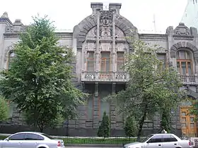 Construido en 1907 en un estilo modernista temprano por el arquitecto E. Bradtman, como encargo de Serhiy Arshavsky, un acaudalado mercante de Poltava, quien lo ocupó hasta la Revolución bolchevique. El edificio mantuvo el nombre de su primer propietario hasta mucho tiempo después e incluso hoy en día es conocido a veces como el Edificio Serhiy Arshavskyi. Tras la revolución fue ocupado por el Grupo Internacional de la Federación del Comité Central del Partido Bolchevique.[1]