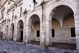 Actualmente el inmueble que ocupa la Casa de las Artesanías conserva su original fisonomía arquitectónica, está edificado en cantera, en estilo plateresco y posee dos niveles. En su fachada principal exhibe un portal de peregrinos integrado por 5 arcos de medio punto y techado con bóvedas de aristas, mientras que en su parte superior se ubican 5 ventanas con arco conopial o flamígero.