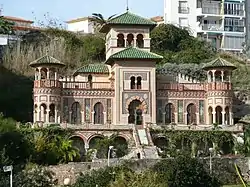 El pequeño palacete residencial está situado en un acantilado frente a la playa de El Bajondillo y consta de dos plantas con torres redondas en las esquinas que finalizan en arcadas y un techo cónico de tejas verdes, siendo la planta baja la destinada a la vivienda de la familia, mientras que planta alta cumplía la función de un gran mirador. Su estética corresponde al estilo neomudéjar, que floreció en España —y en particular en la provincia de Málaga— a finales del siglo XIX y comienzos del XX, estando la decoración interior inspirada en la Alhambra de Granada.[3]
