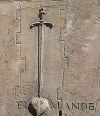 La fachada de la torre, pues tal es la forma del edificio, de sillería y decorada por cinco esculturas sobre consolas, que representan a Hércules, Teseo, Mercurio, Jasón y Héctor. Los héroes están representados en actitud de disposición a entrar en batalla en cualquier momento. Tienen los pies separados para alcanzar mayor estabilidad, los hombros enderezados y la vista enfocada fijamente a la lejanía. Las figuras son en tamaño natural y dado que la fachada del estrecho edificio de tres pisos carece de otros elementos decorativos, su virilidad y belicosidad causan una gran impresión.[4] En la fachada se abre una gran puerta adintelada del siglo XVII y sobre ésta hay tallada una espada que perfora un corazón. Se puede leer el siguiente lema: "El (corazón) manda". Encontramos dos balcones y tres aldabas de bronce, sujetas por corazones a modo de clavos que las sujetan, donde puede leerse: