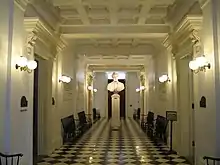 La sala pública principal es el Salón de las Inscripciones, un corredor con pilastras dóricas que presenta ocho monumentales tablas de mármol grabadas con citas sobre la naturaleza distintiva de la cultura y el patrimonio de Vermont. Las tabletas citan la Constitución de Vermont, Ethan Allen, Calvin Coolidge, George Aiken, Warren Austin y Dorothy Canfield Fisher. Cada tableta presenta catorce estrellas doradas, que representan los catorce condados de Vermont, los catorce años del estado como república independiente y el decimocuarto estado en unirse a la Unión federal. Las cuatro esquinas de cada tableta presentan una vaina de grano, un detalle que se encuentra en el Gran Sello de Vermont, diseñado por Ira Allen.