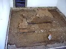 El edificio anterior, que se encontraba en el mismo lugar del edificio conmemorativo, fue arrasado por un incendio de la ciudad en 1689.[3] Durante las excavaciones realizadas en 2006 se descubrieron algunos restos en el interior del edificio actual.[4] Bajo los escombros se encontraron varias vigas carbonizadas, que debían ser soportes de un suelo de tablones, y un suelo de arcilla teñido de rojo por la acción del calor. Mientras que la cerámica encontrada en los suelos data de los siglos XIV-XV, la datación por radiocarbonio de una viga indicó una antigüedad en torno a 1500 o 1600, por lo que no se puede descartar por completo una reconstrucción del suelo alrededor a 1600 o un edificio construido en torno a 1500. Pero probablemente sean realmente los restos de lugar original de nacimiento de Lutero. Los muros exteriores del edificio incendiado fueron removidos cuando se construyó el edificio conmemorativo en 1693. Sin embargo, los sitios que asientan las vigas y una viga del suelo carbonizada muestran una división interna del edificio realizada por un muro de celosía. También se ha encontrado una placa de horno. La casa natal original de Lutero medía probablemente aproximadamente unos 10 × 6 metros con un anexo sobre el lado este del patio de aproximadamente 4 × 4.[5] Dado que hay sótanos abovedados bajo los restos del incendio, éstos también deben haber sido contados como parte de la construcción original. Las excavaciones realizadas en las proximidades del edificio demuestran que la casa natal de Lutero había sido construida en un entorno suburbano de carácter artesanal. No pertenecía a la familia Lutero, sino que solo fue habitada durante unas semanas con motivo del nacimiento de Martín, antes que la familia se trasladara a Mansfeld.