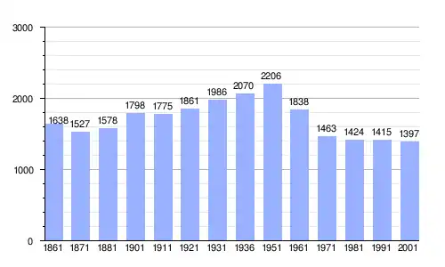 Gráfica de evolución demográfica de Casacanditella entre 1861 y 2001 |