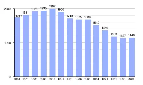 Gráfica de evolución demográfica de Casal Cermelli entre 1861 y 2001 |