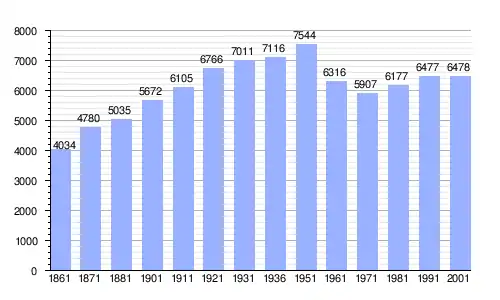 Gráfica de evolución demográfica de Casalbordino entre 1861 y 2001 |