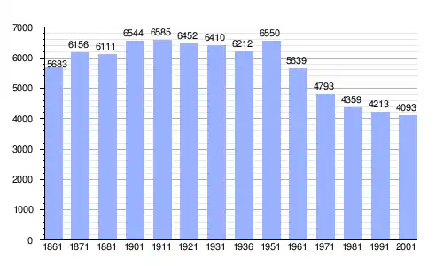 Gráfica de evolución demográfica de Casalbuttano ed Uniti entre 1861 y 2001 |