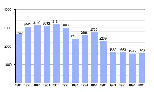 Gráfica de evolución demográfica de Casalduni entre 1861 y 2001 |