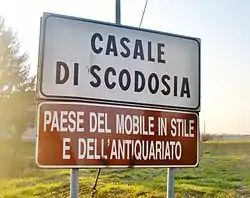 - Esta obra contiene una traducción derivada de «Casale di Scodosia» de Wikipedia en italiano, publicada por sus editores bajo la Licencia de documentación libre de GNU y la Licencia Creative Commons Atribución-CompartirIgual 3.0 Unported.