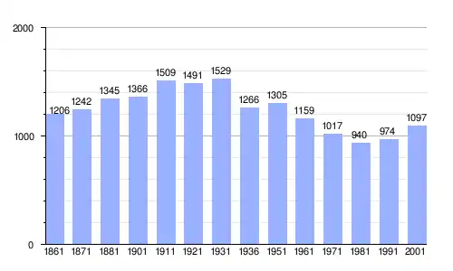 Gráfica de evolución demográfica de Casaletto Ceredano entre 1861 y 2001 |