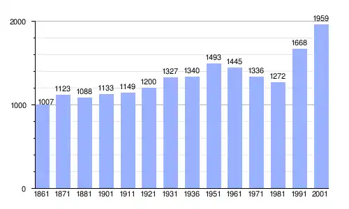 Gráfica de evolución demográfica de Casaletto Lodigiano entre 1861 y 2001 |