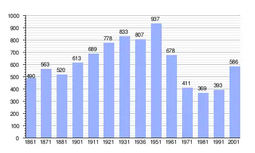 Gráfica de evolución demográfica de Casaletto di Sopra entre 1861 y 2001 |