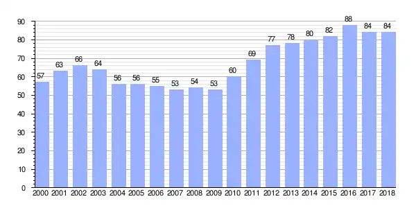 Gráfica de evolución demográfica de Casaliño entre 2000 y 2018 |