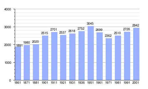 Gráfica de evolución demográfica de Casalincontrada entre 1861 y 2001 |