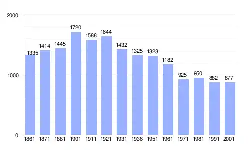 Gráfica de evolución demográfica de Casalnoceto entre 1861 y 2001 |