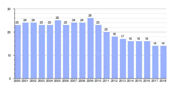 Gráfica de evolución demográfica de Casalpegito entre 2000 y 2018 |