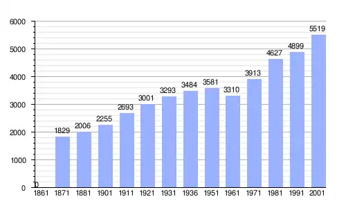 Gráfica de evolución demográfica de Casalserugo entre 1861 y 2001 |