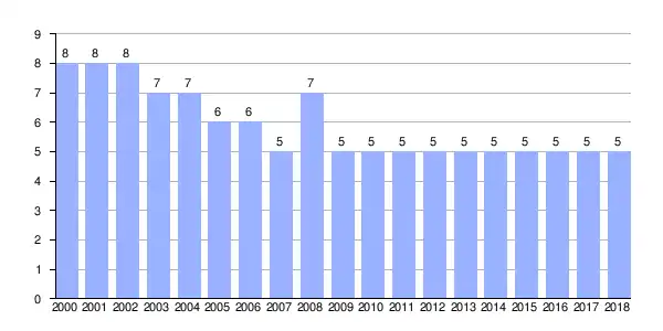 Gráfica de evolución demográfica de Casanova entre 2000 y 2018 |