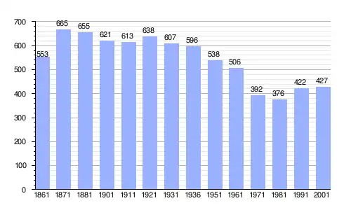 Gráfica de evolución demográfica de Casanova Lonati entre 1861 y 2001 |