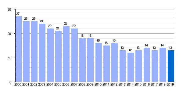Gráfica de evolución demográfica de Casas de Carrasco[1] entre 2000 y 2019 |